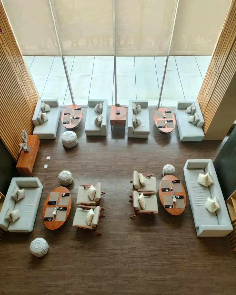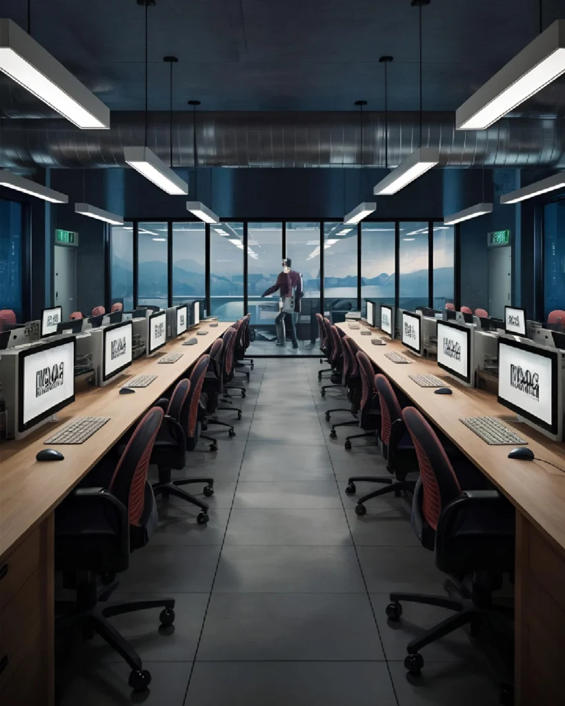 Sleek, tech-integrated conference tables for focused discussions and presentations.